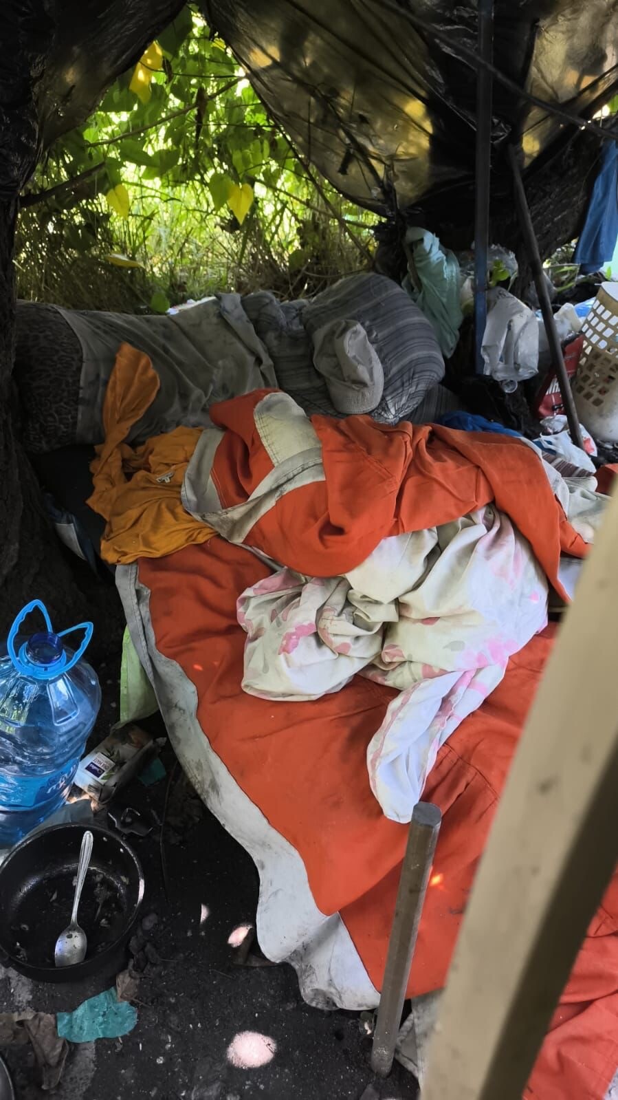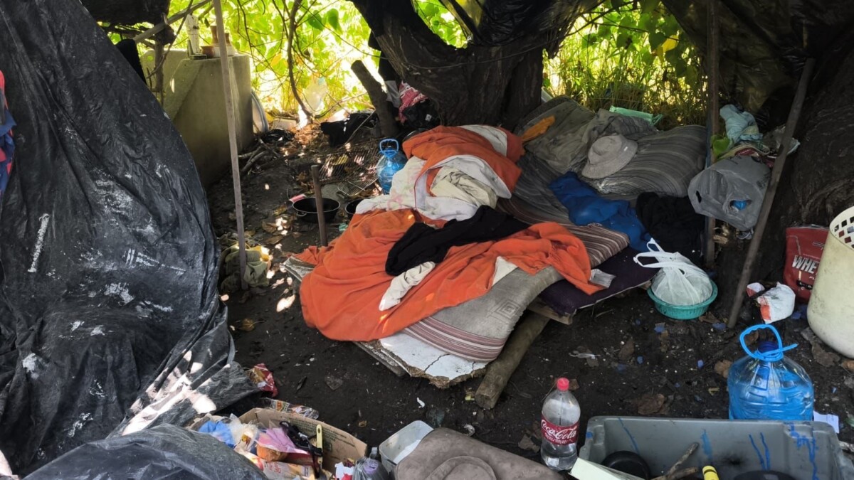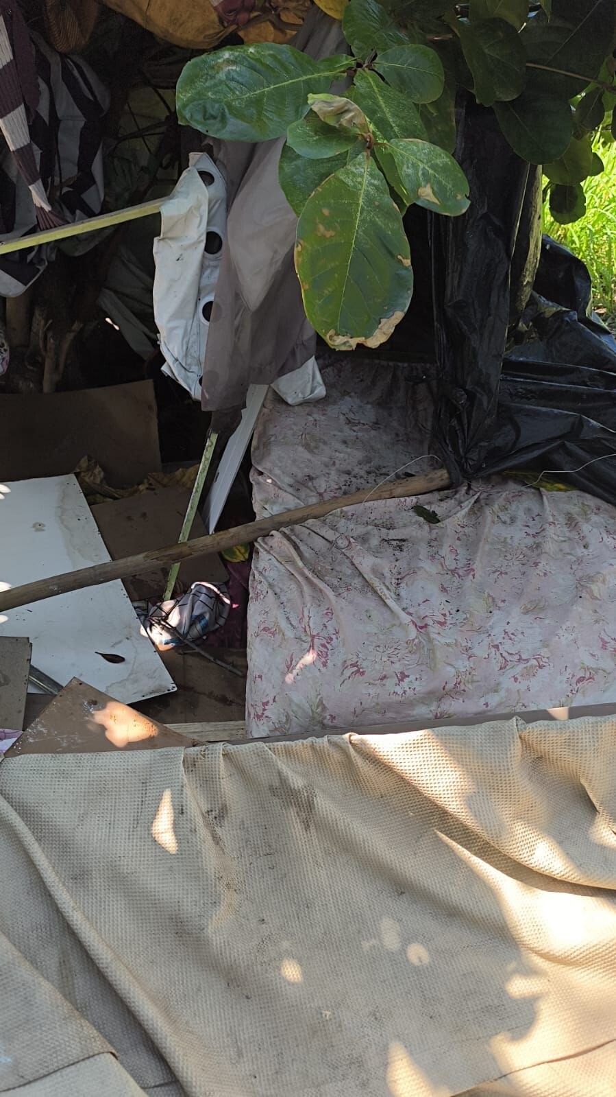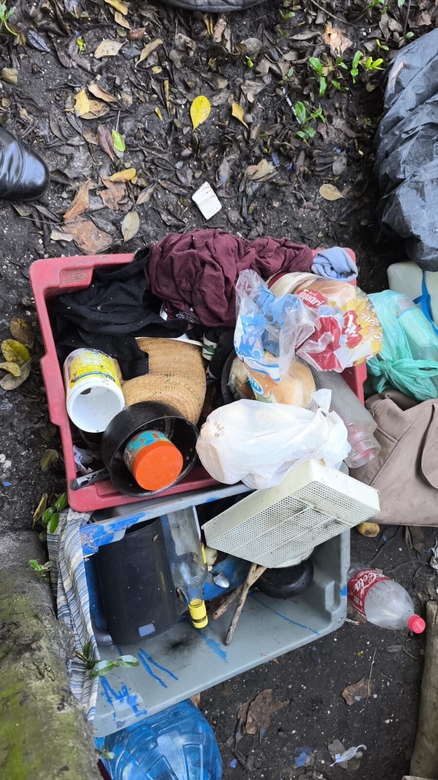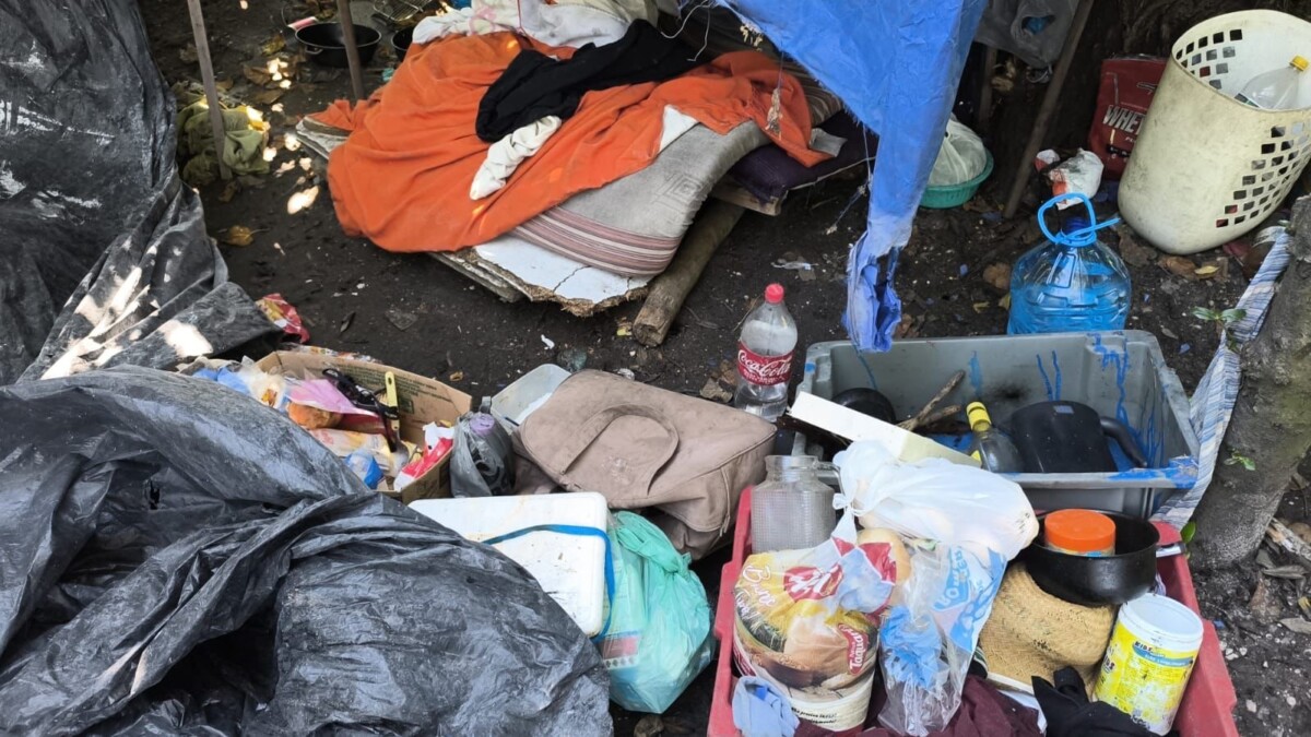 No local, as equipes encontraram camas, colchões, cobertores, armários de cozinha, utensílios domésticos, churrasqueira e lonas, caracterizando ocupações improvisadas com características de residência. Além da ocupação irregular, também foi identificado grande acúmulo de lixo na área.