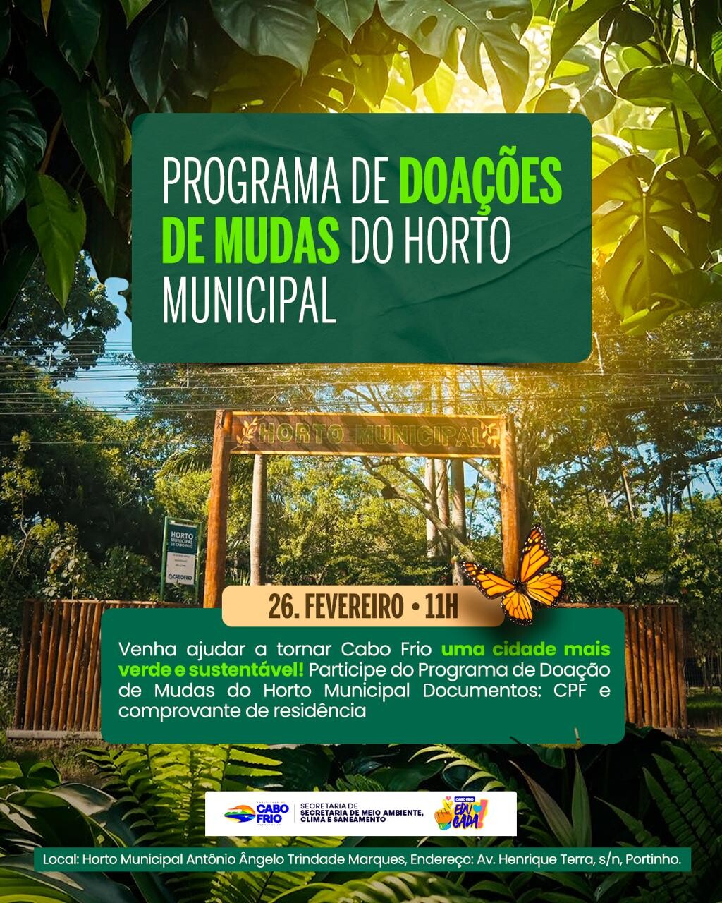 Com o objetivo de promover a preservação ambiental de forma responsável, a Prefeitura de Cabo Frio, por meio da Secretaria de Meio Ambiente, Clima e Saneamento, anuncia o retorno do Programa de Doação de Mudas. A iniciativa será lançada na próxima quinta-feira (26), a partir das 11h, no Horto Municipal. Um novo sistema de controle, com banco de dados on-line, garantirá que o acesso às espécies frutíferas e nativas seja feito de forma transparente e igualitária entre os moradores da cidade.