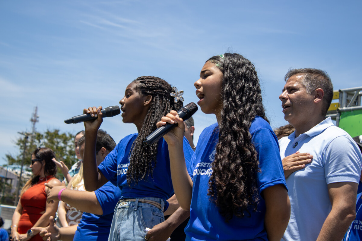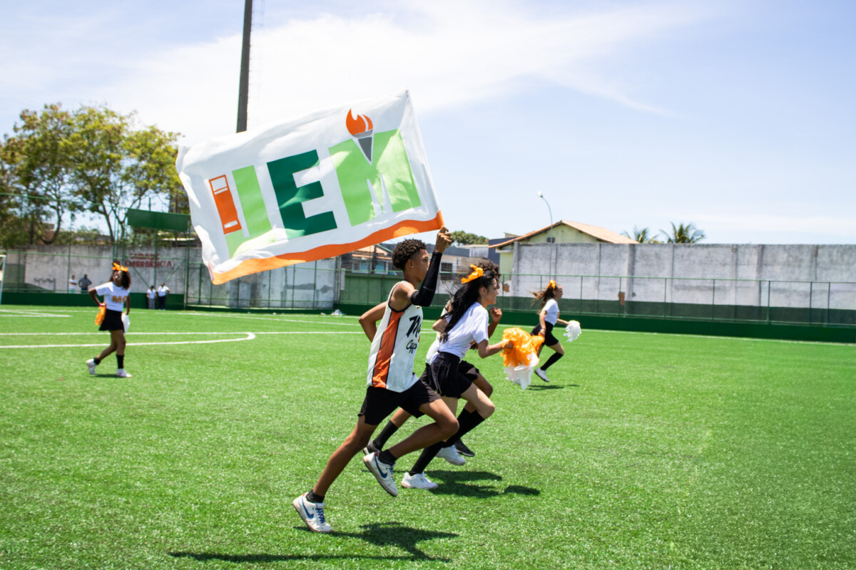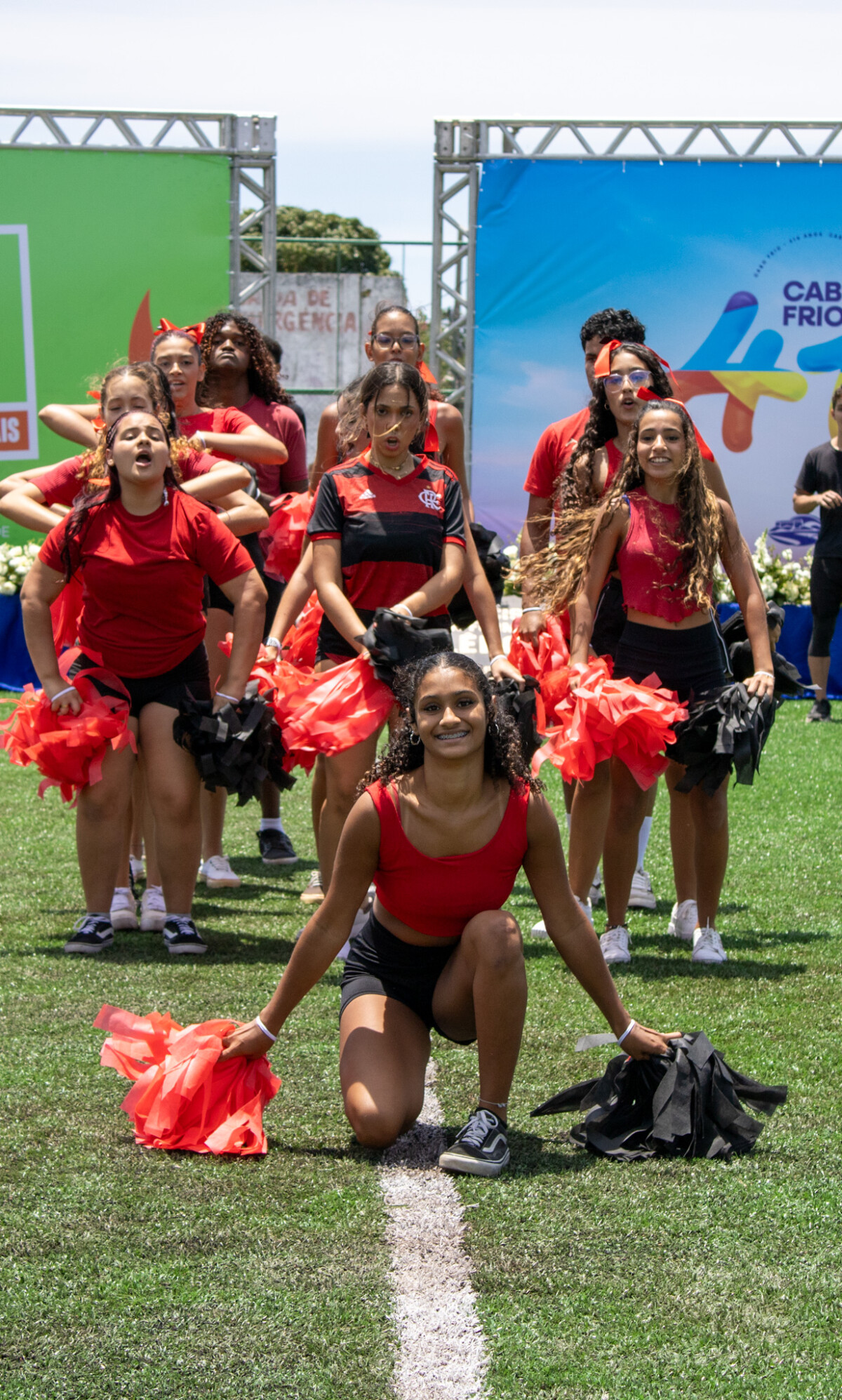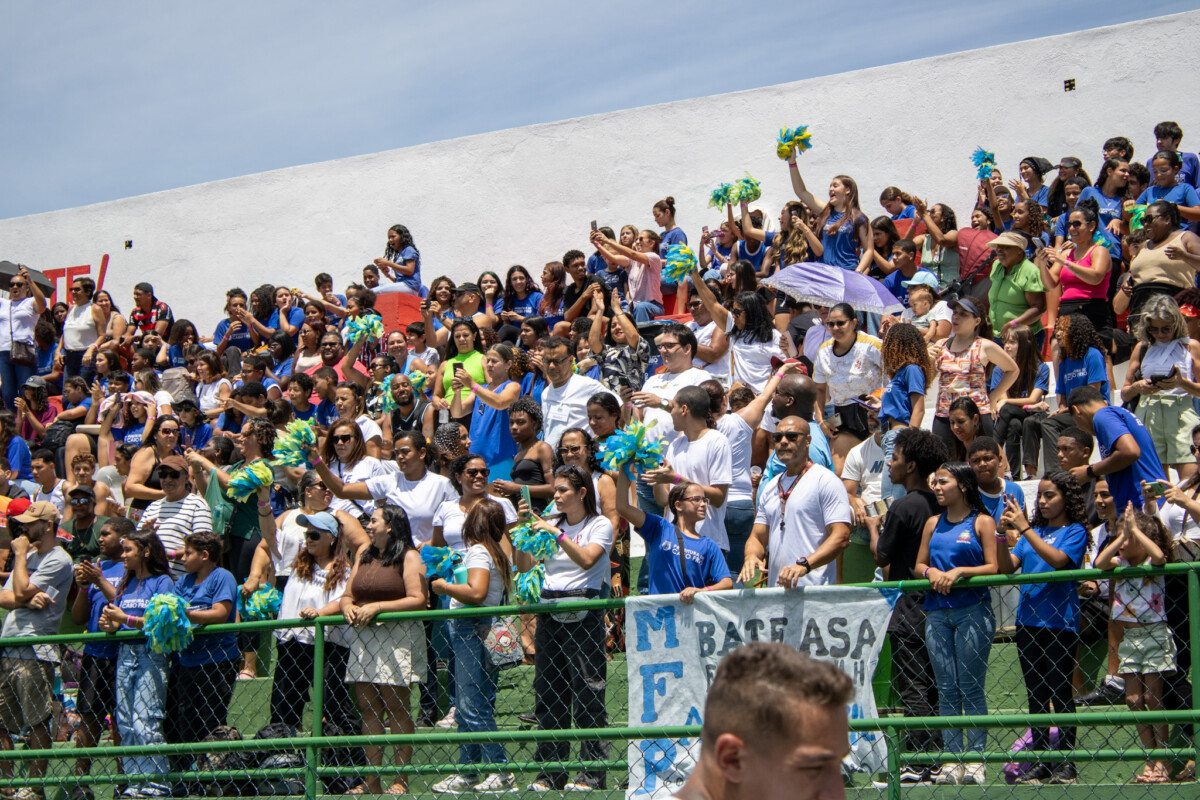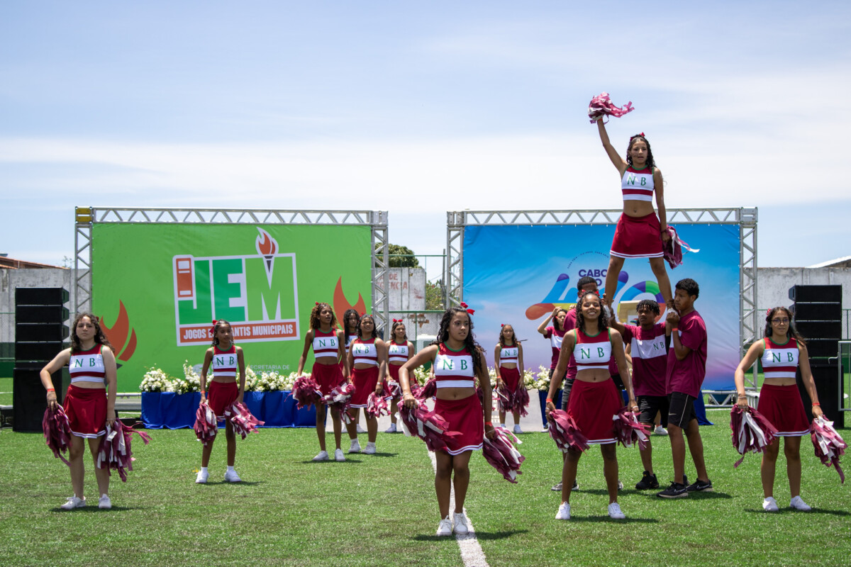 A cerimônia de premiação teve início com a mostra competitiva das equipes de cheerleaders, que deram um show de energia e empolgaram o público e as torcidas organizadas com coreografias vibrantes. Em seguida, alunos da Escola Municipal Professora Catharina da Silveira emocionaram os presentes com uma apresentação de dança em prol da “Educação Antirracista”, reforçando o compromisso da rede municipal com a educação para a igualdade racial e o respeito à diversidade.