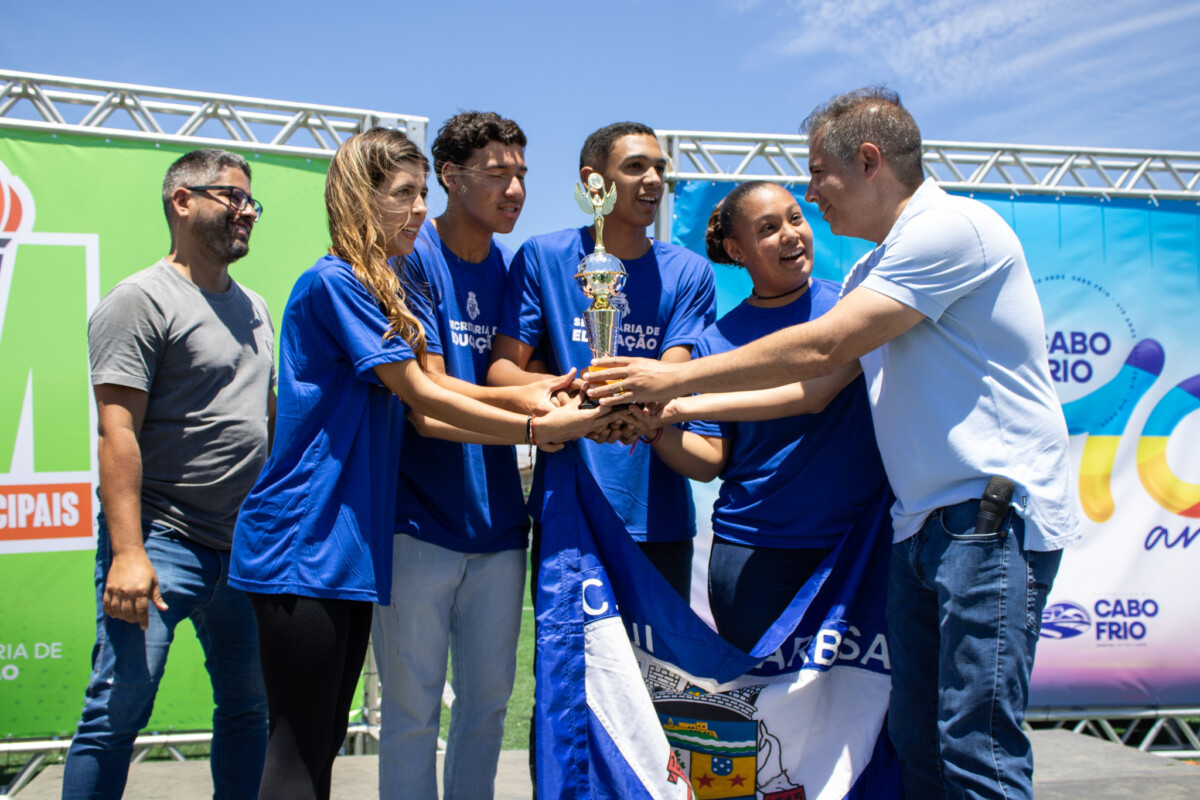 Na oportunidade, o prefeito Dr. Serginho e o secretário municipal de Educação, Alessandro Teixeira, conduziram a entrega dos troféus aos alunos e escolas vencedoras. O pódio geral teve como grande campeã a Escola Municipal Márcia Francesconi Pereira, seguida pelo Centro Educacional Municipal Professora Marli Capp, em segundo lugar, e pelo Colégio Municipal Rui Barbosa, em terceiro lugar.