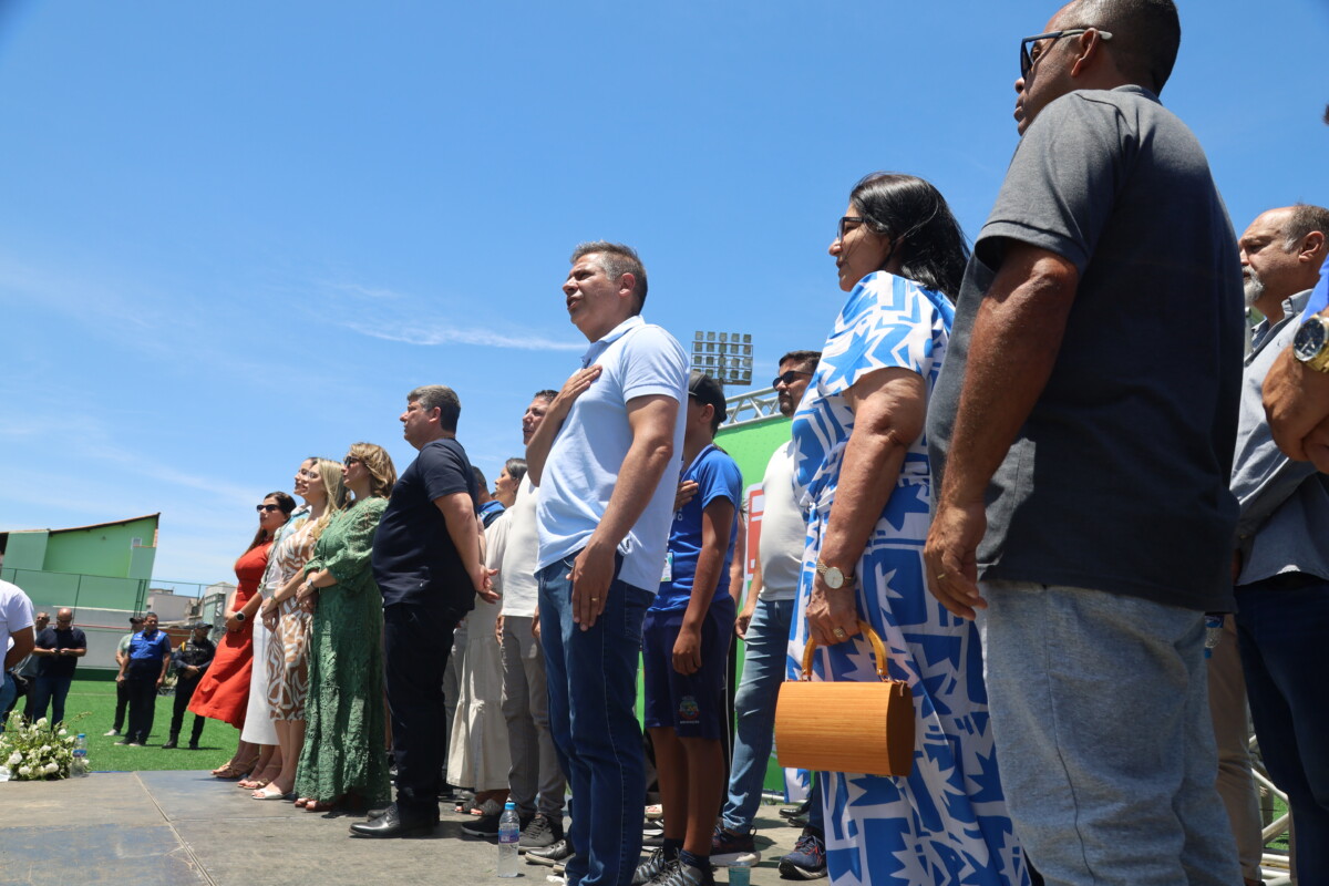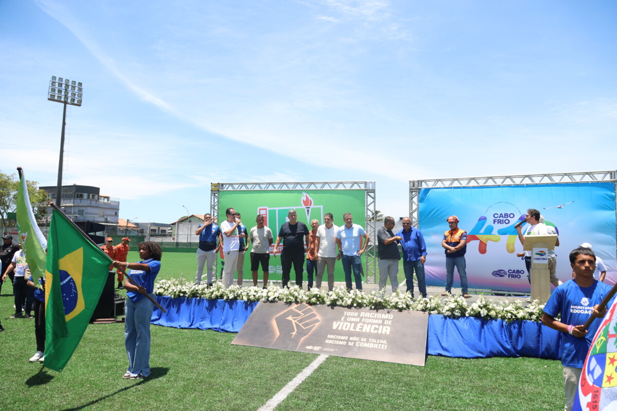 “No aniversário da cidade, quem ganha o presente somos nós. É uma alegria ver a juventude cabo-friense retomando o esporte através dessa iniciativa. Tenho orgulho em ser o 31º prefeito desta cidade e de participar da história de Cabo Frio. Esse estádio, que estava abandonado e destruído, está sendo devolvido à população e à juventude de uma maneira nunca vista antes, com gramado híbrido, nos padrões internacionais, porque em 410 anos de história, Cabo Frio merece o que há de melhor. Quero parabenizar toda equipe da Educação pela dedicação, assim como cada professor, diretor e servidor que enfrentou desafios conosco. Nós vamos avançar cada vez mais para continuar resgatando o orgulho de ser cabo-friense. Que Deus abençoe nossa cidade e nossos alunos, que são o futuro de Cabo Frio”, disse.