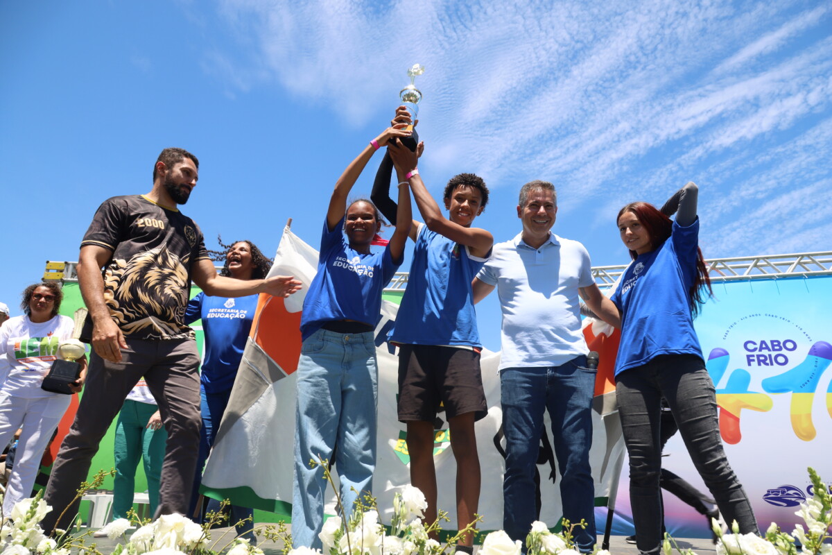 O secretário Alessandro Teixeira falou sobre a retomada e da contribuição dos Jogos Estudantis Municipais na formação dos alunos. “A nossa felicidade está representada no sorriso de cada aluno. É muito gratificante ver tantas escolas reunidas, com uma alegria tremenda e em uma data festiva para o município de Cabo Frio. Fizemos uma retomada muito importante do JEM, integrando educação e esporte, envolvendo os alunos para além daquilo que é trabalhado em sala de aula. Estar aqui é uma alegria também para nós, servidores da rede pública municipal de ensino, das nossas equipes diretivas e dos familiares dos alunos, celebrando as escolas campeãs e o troféu Fair Play, que dá a exata dimensão da importância que tem o esporte dentro de uma formação cidadã. O JEM trouxe a importância do respeito, da participação, do trabalho em equipe e da harmonia, que são fundamentais quando se quer alcançar coletivamente um resultado positivo”, destacou.