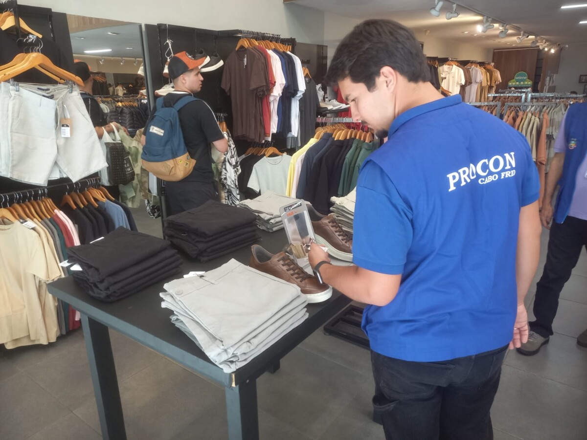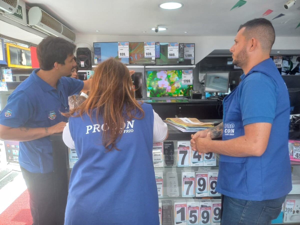 Com a proximidade do Dia dos Pais, muita gente corre para as lojas atrás de presentes. Por isso, o Procon de Cabo Frio realizou, nesta quarta-feira (6), uma ação de fiscalização no comércio de rua da cidade, com o objetivo de orientar os lojistas e apurar possíveis afrontas ao Código de Defesa do Consumidor.