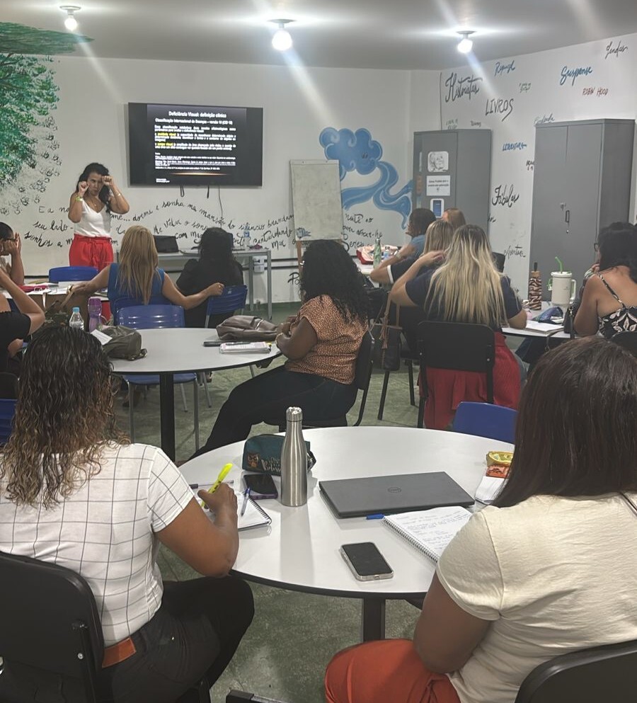 O programa está organizado em módulos que abordam desde o conhecimento das especificidades da deficiência visual até práticas relacionadas à leitura e à escrita, incluindo o uso de recursos pedagógicos e tecnológicos que favorecem o desenvolvimento e a participação dos estudantes.