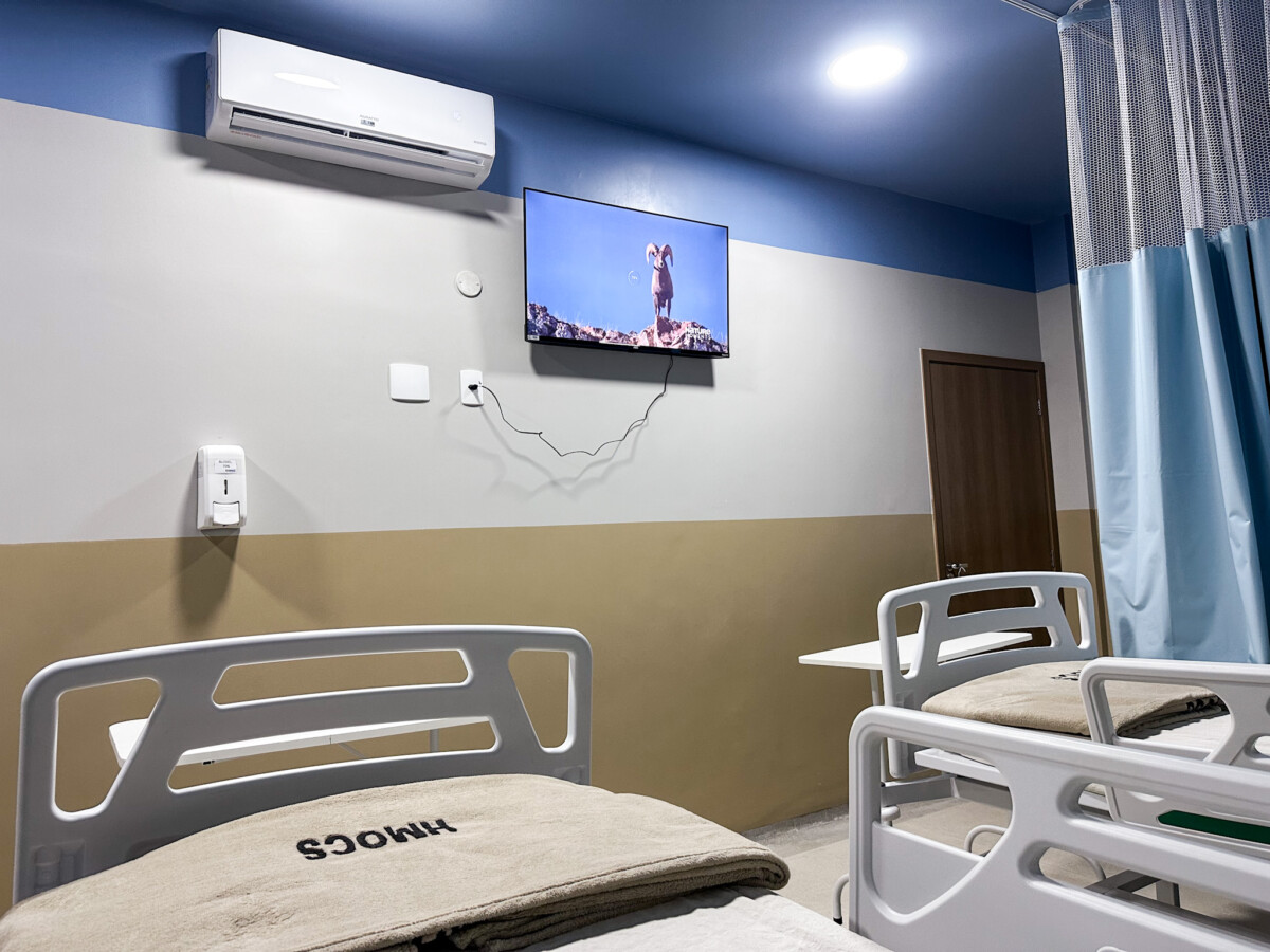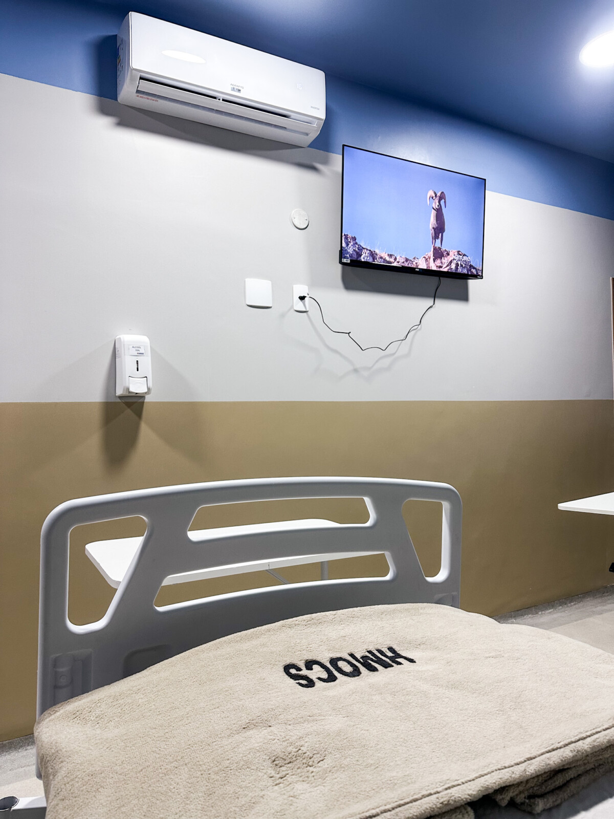 Para agilizar o atendimento, foi implantado um sistema de campainha, o “chama-leito”, garantindo o acionamento rápido da enfermagem em caso de necessidade. Também foram trocados todos os estofados e portas, além de renovado o enxoval do hospital, como roupas de cama. Outra novidade importante foi a instalação de dois leitos de isolamento, já que a unidade não contava com nenhum até então.