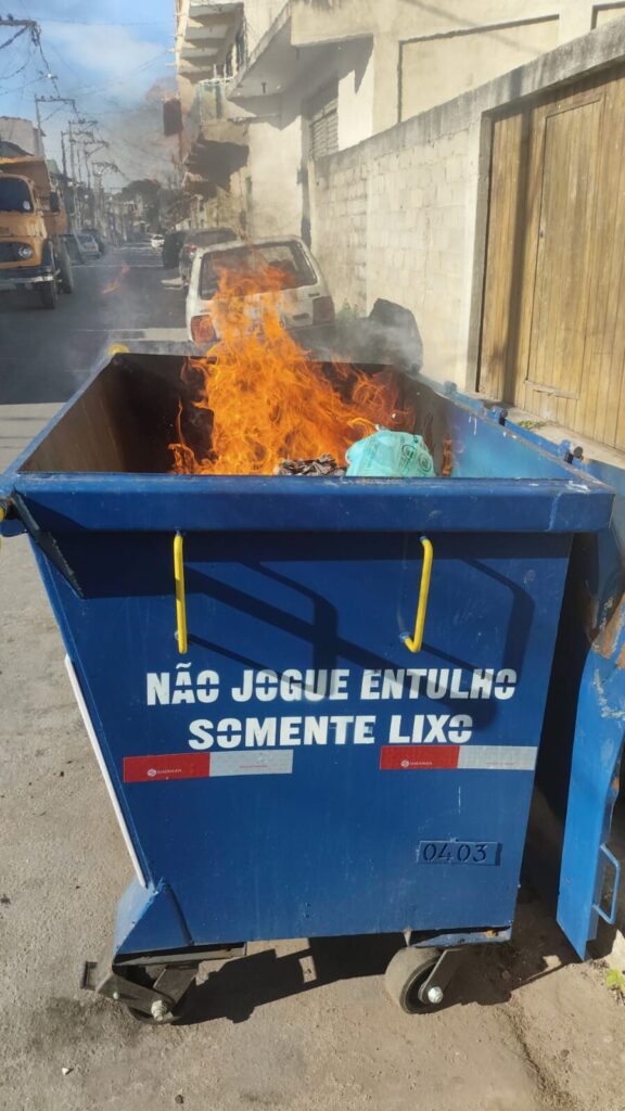 A ação de colocar fogo no lixo dentro do contêiner, além de colocar vidas em risco, pode causar danos ao equipamento, atrapalhar a rotina da coleta e até causar acidentes com moradores ou trabalhadores da limpeza urbana.