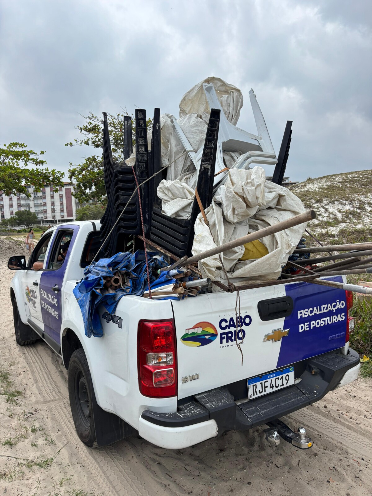A Secretaria Adjunta de Licenciamento e Fiscalização intensificou o trabalho de ordenamento nas praias e espaços públicos, garantindo que moradores e turistas pudessem aproveitar os locais de forma segura e organizada. Durante o feriado, foram apreendidos 929 itens irregulares, entre caixas de som, cadeiras, mesas, guarda-sóis e materiais utilizados por ambulantes sem autorização.