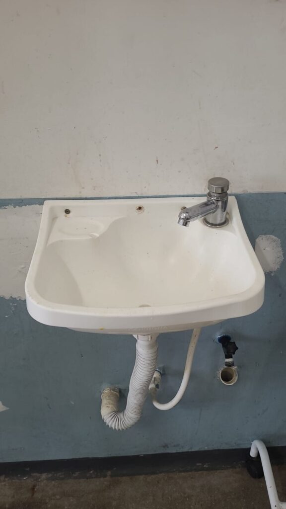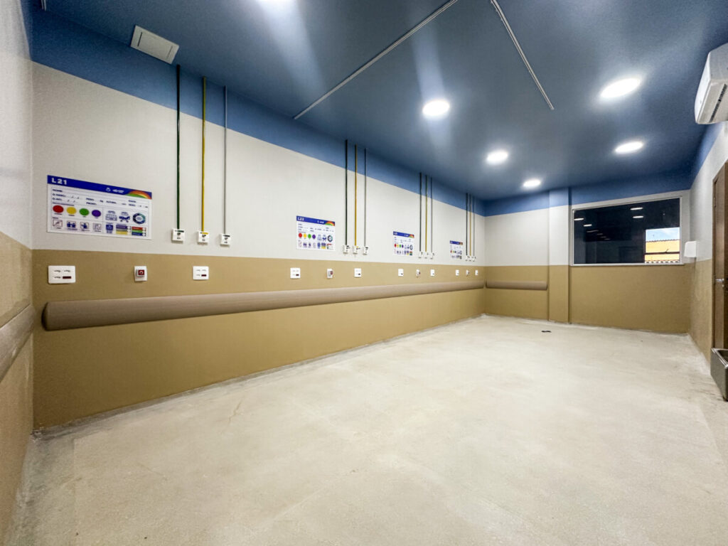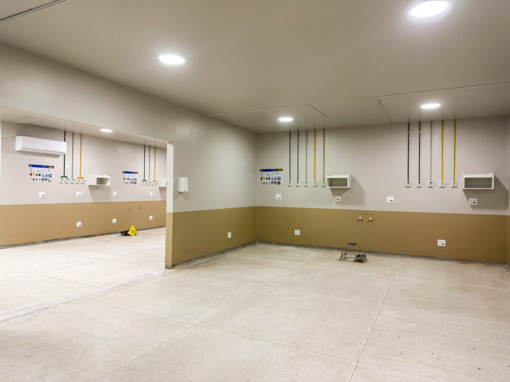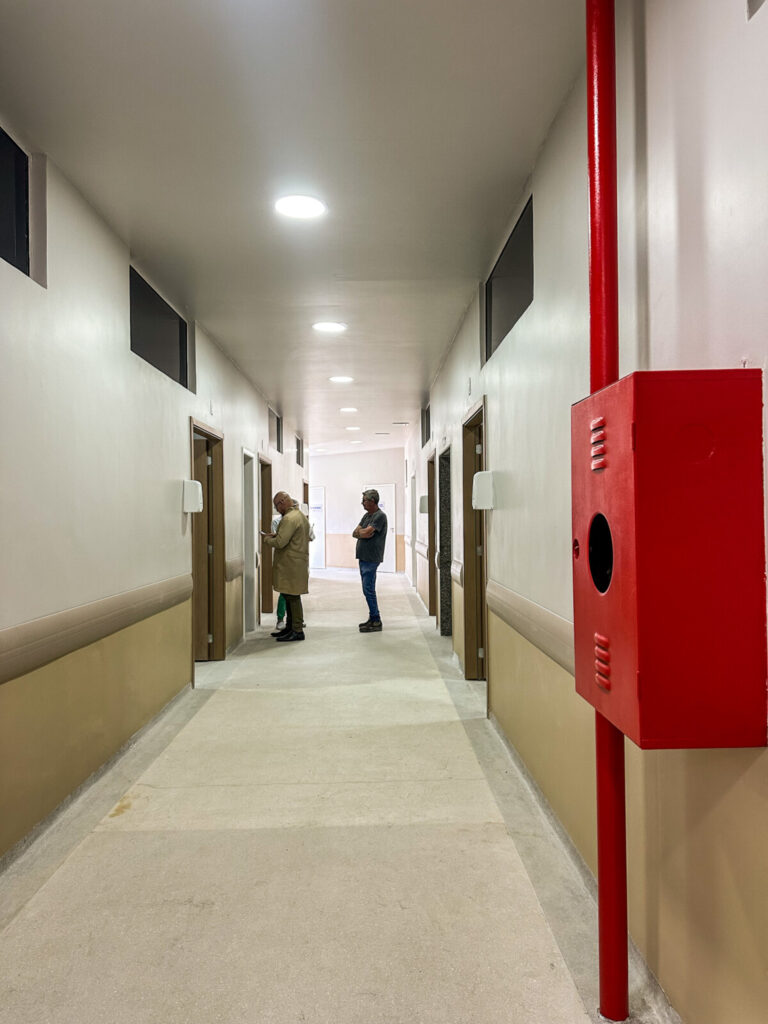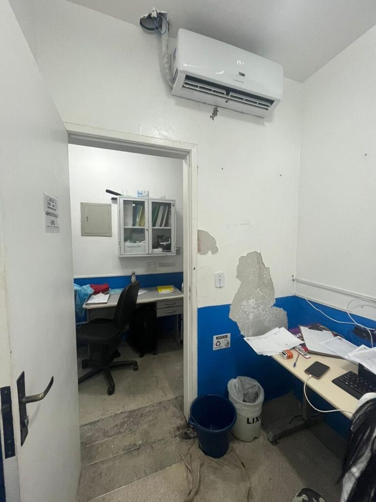 Para começar, todo o telhado foi trocado: antes feito de amianto, agora conta com laje e duas camadas de impermeabilização. A parte elétrica também era um problema grave: não havia isolamento da rede de eletricidade e, com os vazamentos, a água entrava em contato direto com interruptores, pontos de iluminação e tomadas, gerando riscos evidentes para pacientes e trabalhadores da unidade. A reforma encerra definitivamente esse problema.