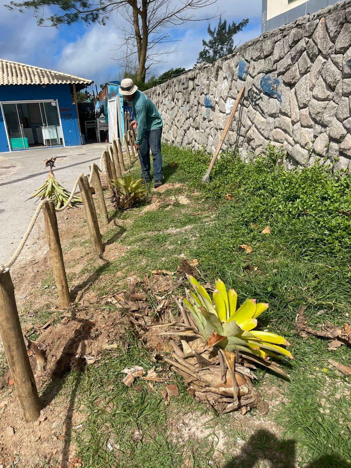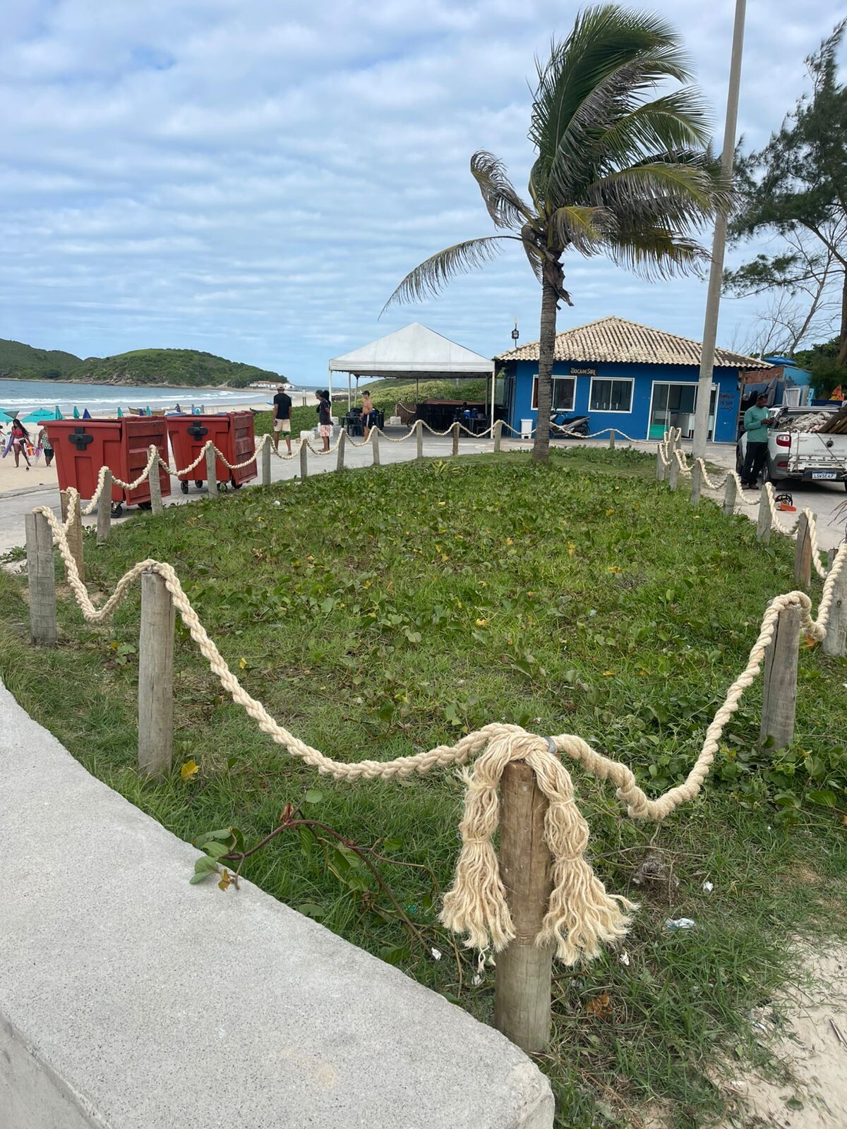 Alguns cercamentos já existiam no local, mas haviam sido danificados ou removidos. Agora, estão sendo recolocados como parte dos cuidados constantes com a praia. Além disso, mudas nativas também foram plantadas, como ipomeia, bromélias, mandacaru-da-praia, cactos e outras espécies da restinga, contribuindo para a recuperação da área degradada.
