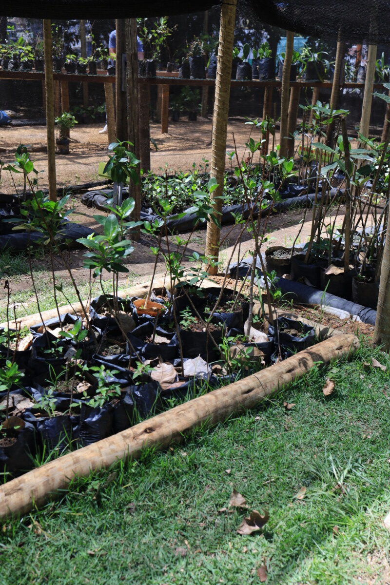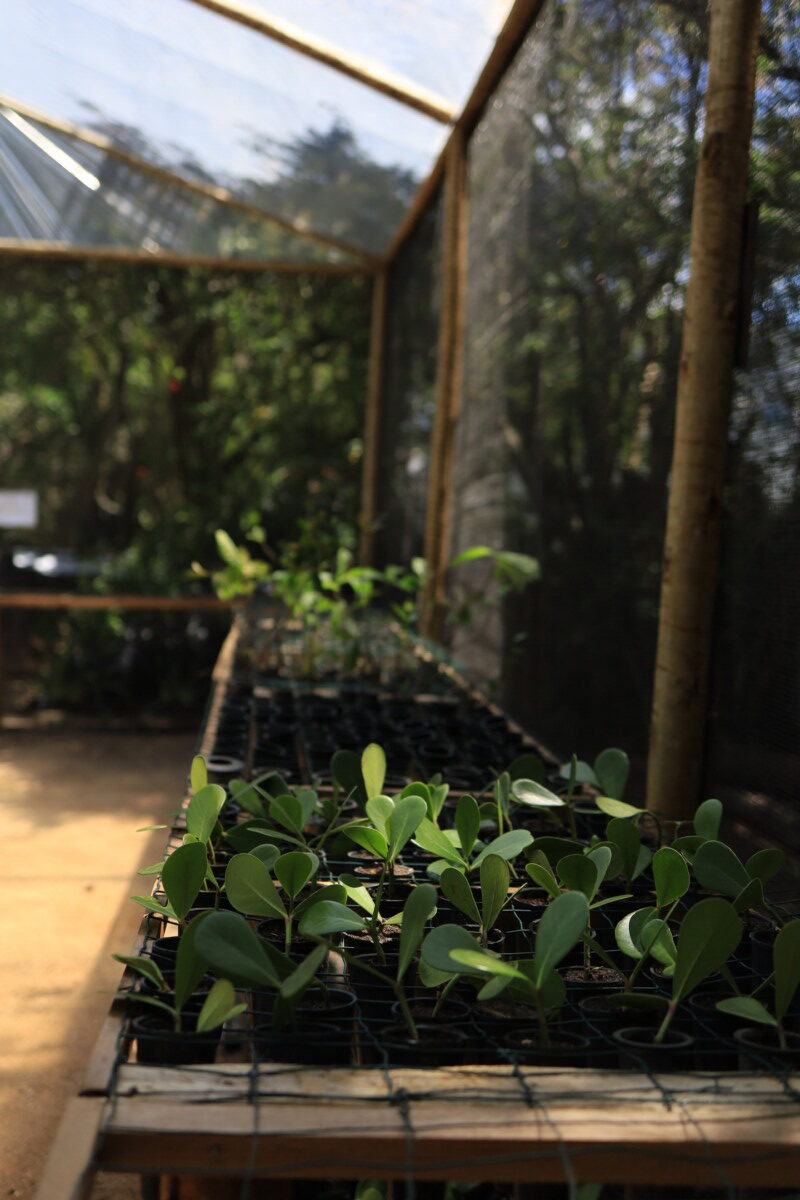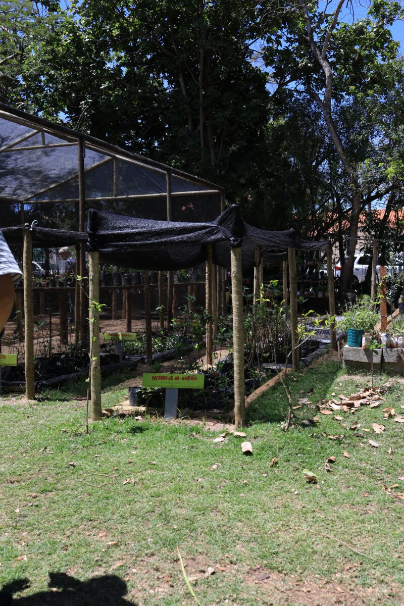 No local são cultivadas espécies de mangue-vermelho (Rhizophora mangle), mangue-branco (Laguncularia racemosa), mangue-preto (Avicennia schaueriana) e mangue-de-botão (Conocarpus erectus), que formam a base dos manguezais da região e desempenham papel fundamental na proteção da linha de costa, na retenção de sedimentos, na filtragem de poluentes e como berçários naturais para peixes, crustáceos e moluscos.