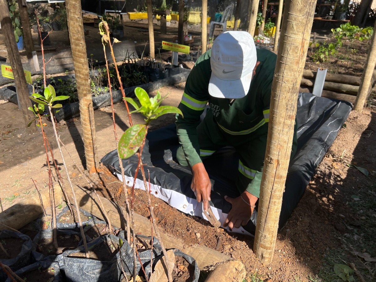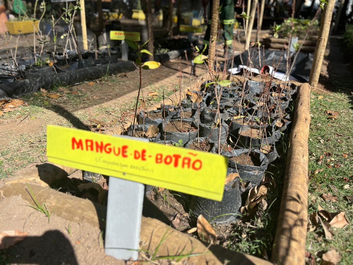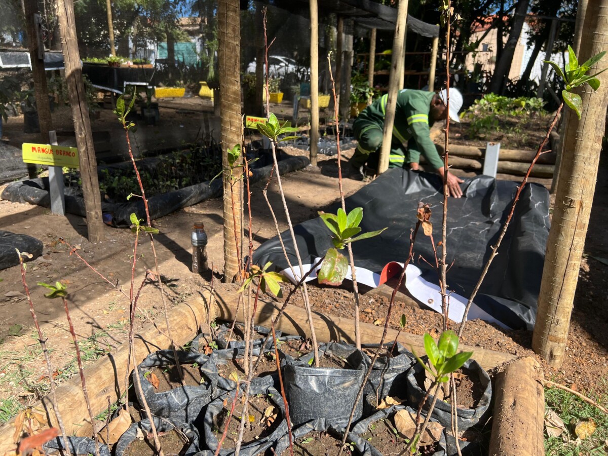 As mudas de mangue, coletadas em áreas do segundo distrito e também do primeiro distrito, foram transplantadas para recipientes contendo substrato à base de terra preta, argila e adubação mineral. As espécies permanecem nos viveiros do Horto por um período que pode variar de 30 a 90 dias, passando pelo processo de aclimatização, no qual são adaptadas gradualmente às condições ambientais locais antes do replantio em áreas definitivas.