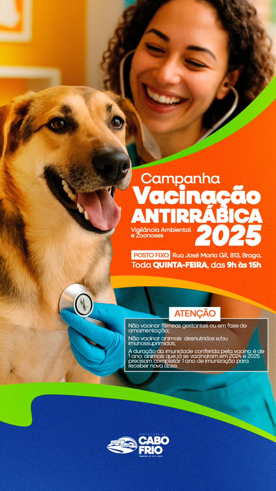 Quem deseja vacinar seu pet contra a raiva já pode fazê-lo em um posto fixo que a Prefeitura de Cabo Frio disponibilizará, por meio da Secretaria de Saúde, a partir desta quinta-feira (26). O local ficará aberto, sempre às quintas-feiras, das 9h às 15h, bastando ao tutor cumprir os requisitos para vacinação. O endereço é a Rua José Maria Gil, 813, bairro Braga.