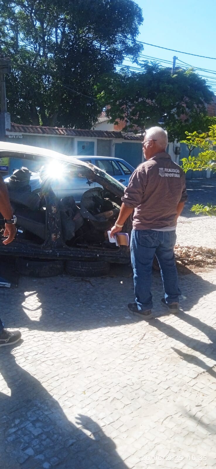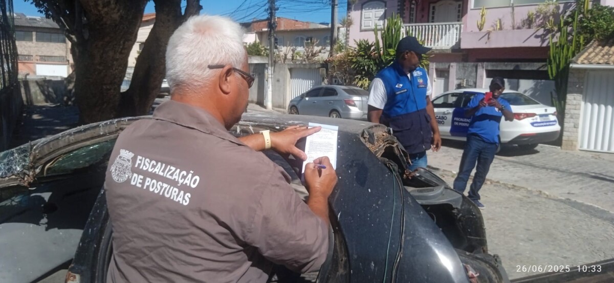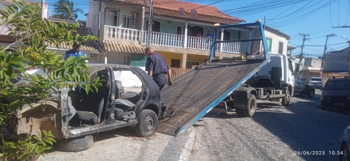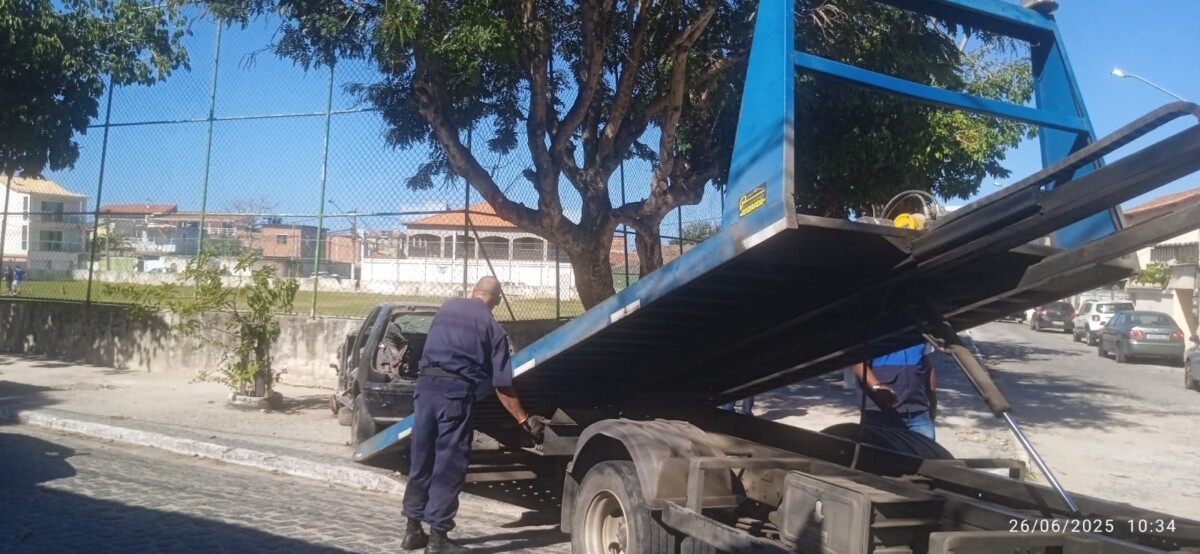 A Secretaria de Segurança e Ordem Pública segue com a força-tarefa para a retirada de veículos abandonados nas ruas de Cabo Frio. Nesta quinta-feira (26), a ação foi realizada no bairro Praia do Siqueira e resultou no recolhimento de três automóveis para o depósito público.