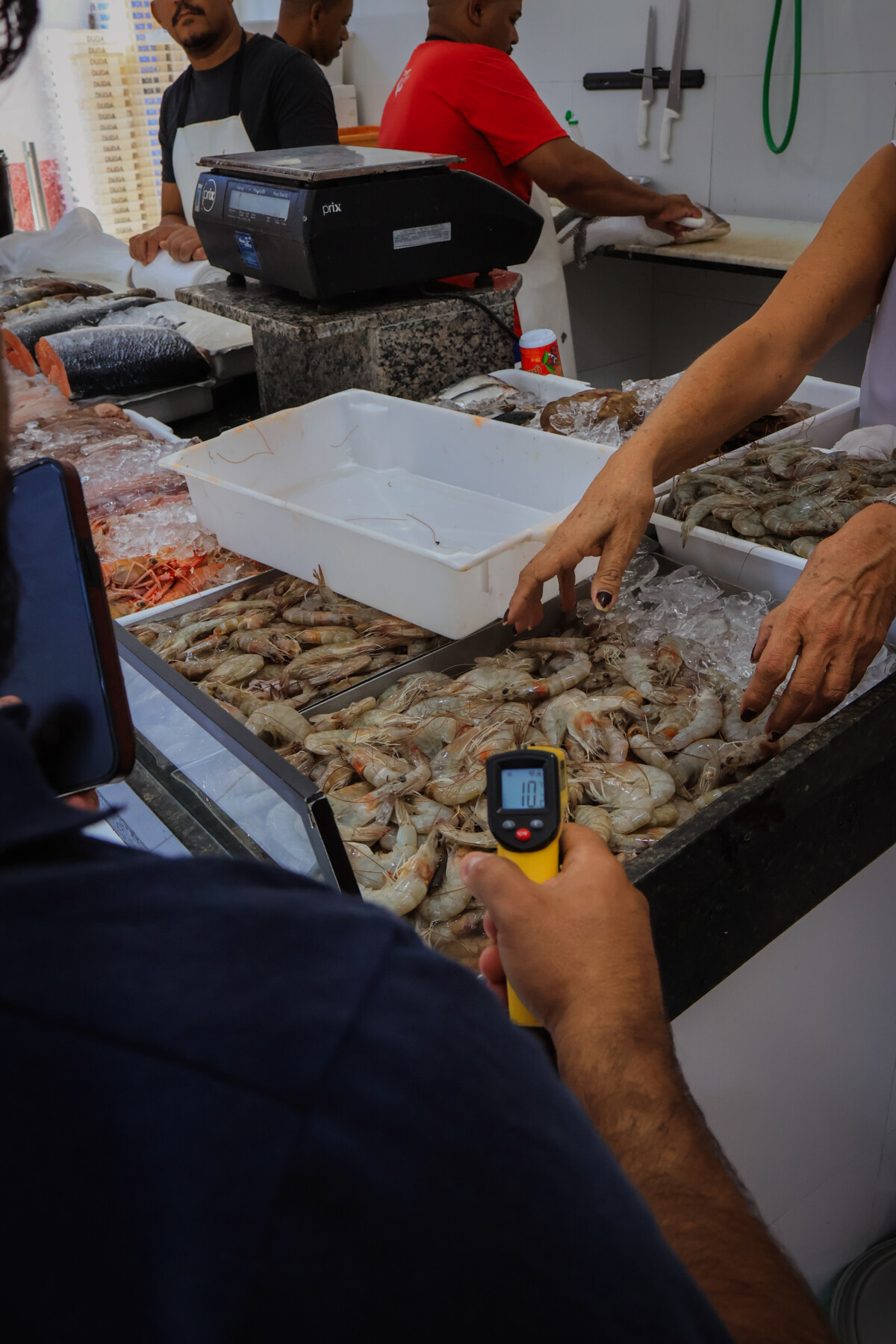 Durante as inspeções, foram realizadas orientações técnicas aos responsáveis pelos estabelecimentos, com ênfase no reforço na higienização dos ambientes; na organização dos produtos e áreas de manipulação; no uso adequado e contínuo de gelo para conservação dos pescados; e nas boas práticas de manipulação de alimentos.