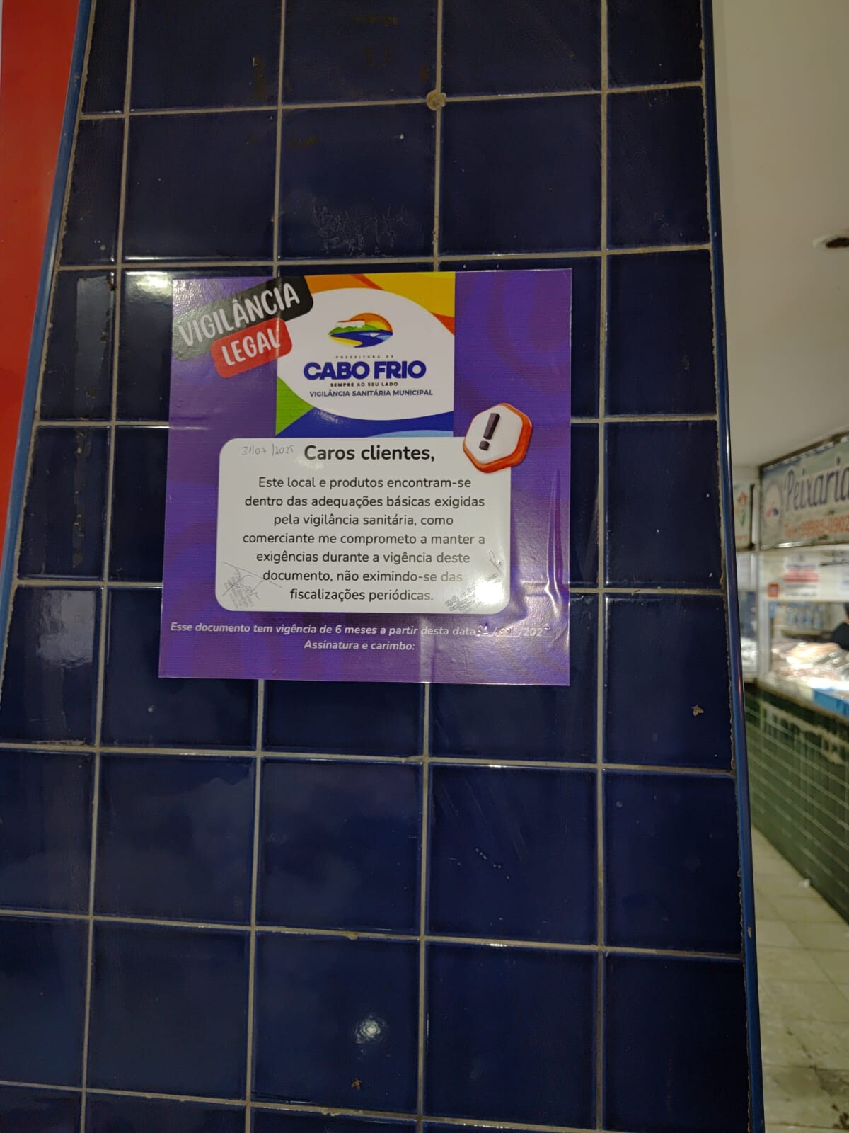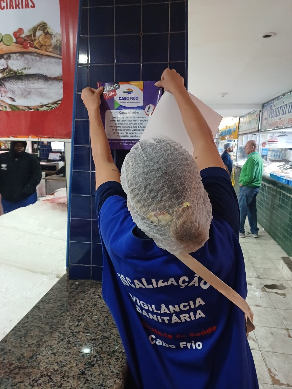 A equipe da Vigilância Sanitária da Secretaria de Saúde de Cabo Frio, em parceria com a Secretaria de Agricultura e Pesca, realizou uma ação de fiscalização no Mercado Municipal de Peixes nesta quinta-feira (31). O objetivo foi verificar as boas práticas de higiene aplicadas pelos comerciantes de peixe e o cuidado com o pescado. Um selo de qualidade, que atesta as condições do estabelecimento e as práticas em conformidade com as normas da Vigilância, foi distribuído nas bancas.